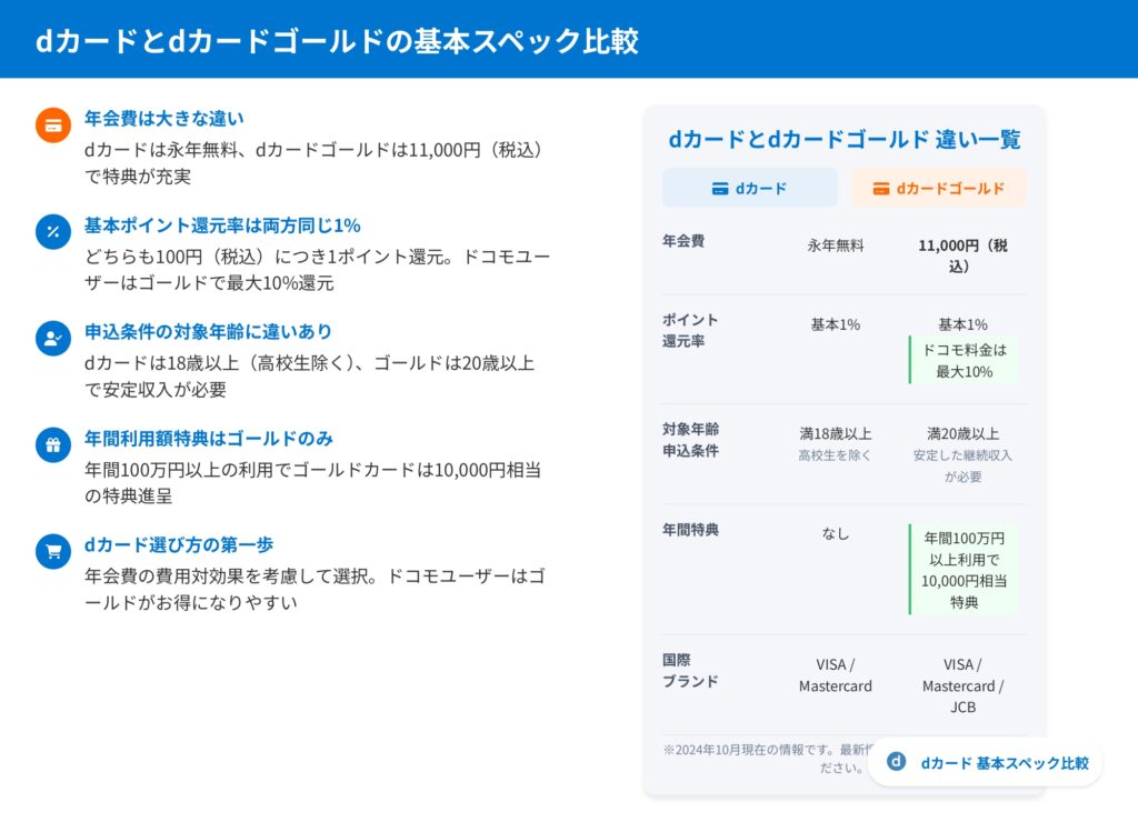dカードとdカードゴールドの基本スペック比較