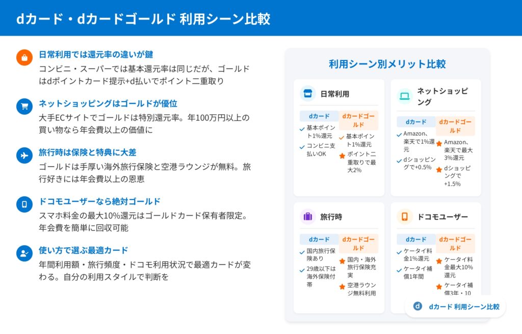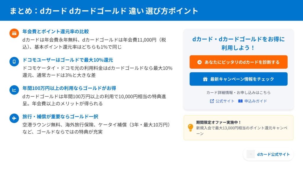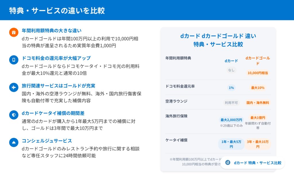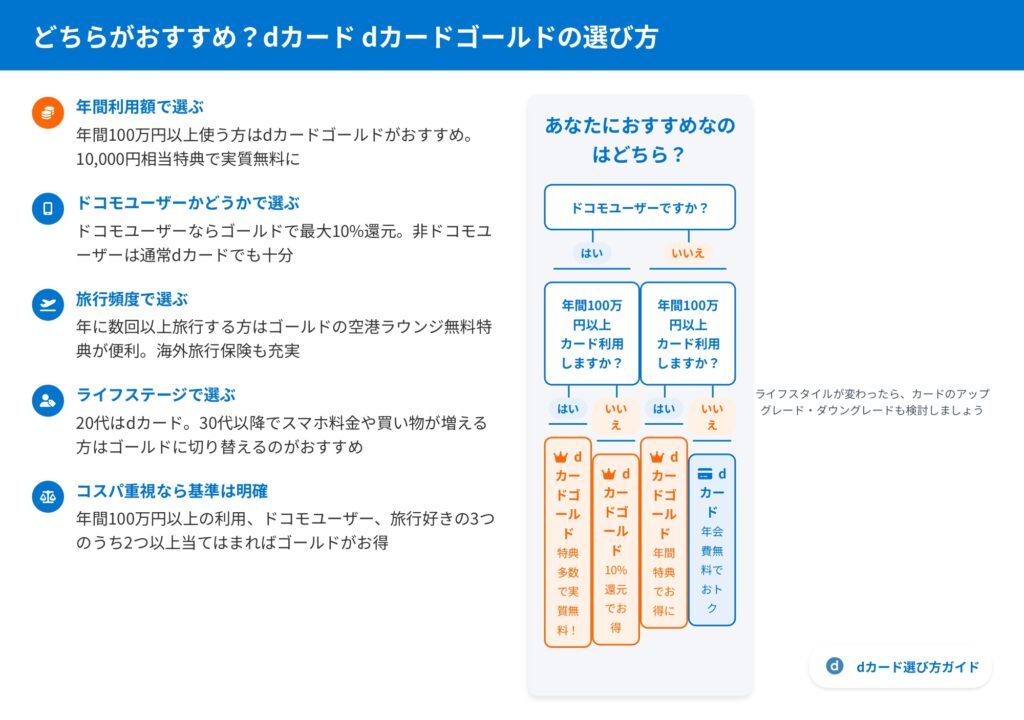 dカードとdカードゴールドの違いを様々な角度から比較してきました。
